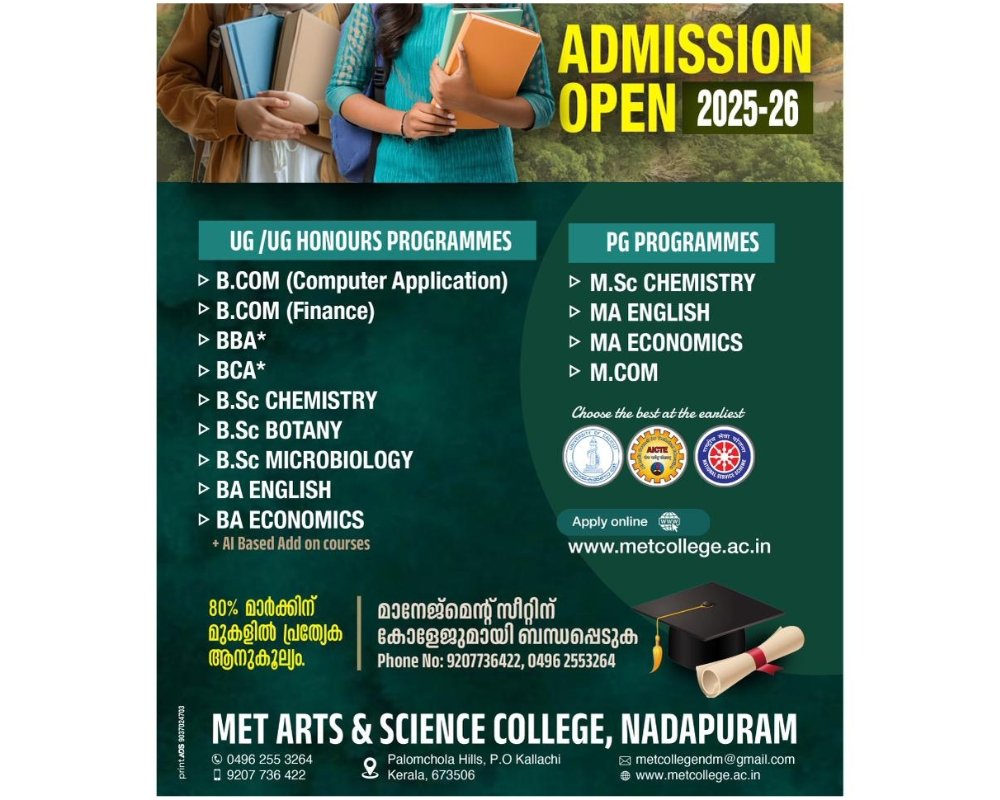 MET Arts & Science College, Nadapuram, affiliated with Calicut University, offers quality education, modern facilities, and a serene campus fostering academic excellence and holistic student development.